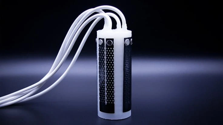 But the material didn’t stretch much, which would limit its use for soft robotics. Inspired by kirigami – a variation of origami that includes making cuts in a material – Truby designed and laser-cut rectangular strips of conductive silicone sheets into various patterns, such as rows of tiny holes or crisscrossing slices like a chain link fence. That made them far more flexible, stretchable, “and beautiful to look at,” Truby says.