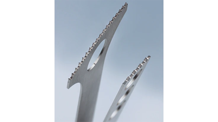The basic shape of a surgical cutting tool is often machined on Swiss-type lathes, including the driving notch.
