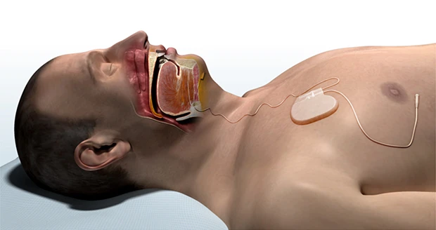 Inspire therapy is a fully implanted system consisting of three components: a small generator, a sensing lead, and a stimulation lead. The single external component is a small handheld Inspire sleep remote used to turn the therapy on before bed and off upon waking. When activated, Inspire therapy senses breathing patterns and delivers mild stimulation to key airway muscles, which keeps the airway open during sleep. In contrast to other surgical options to treat sleep apnea, Inspire therapy does not require removal or permanent alteration of facial or airway anatomy. As such, the procedure is less invasive and should result in a shorter recovery time.