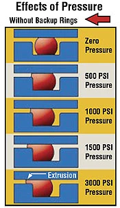 Designed to deform, the O-ring “flows” to fill the diametrical clearance and blocks any further leakage. The following illustration shows a progressive application of pressure and the effect it has on the seal. Pressure, as well as many other considerations, determines the effectiveness of a seal.