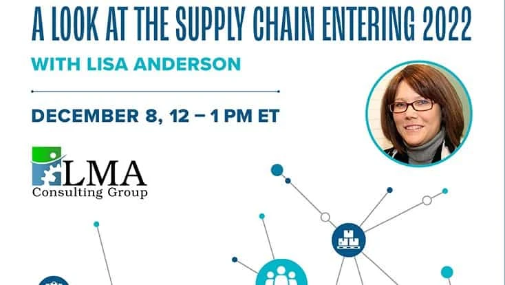 Make sure to register for the Dec. 8, 2021 webinar where Lisa Anderson will be discussing the supply chain as we head into 2022.
