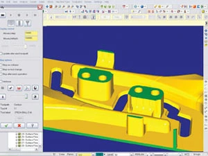 "We use the new roughing and finishing toolpaths in Mastercam X to do this work as efficiently as possible. Basically we take the 3D model of the part and position it where our stock is shown in the Mastercam programming environment. Then the programmer selects a surface, assigns a tool and the desired toolpath, and fills in a few parameters that go with it," continues Smith.