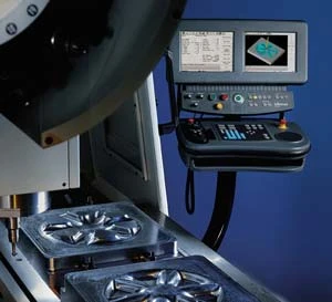 According to Hurco, the UltiMax control, which includes WinMax software, got its name by being the ultimate in power and the maximum in simplicity. The ergonomic design has easy-to-understand buttons and the slim, touch-screen, color monitor helps simplify programming tasks. Its primary distinction is the exclusive dual-panel display. With the interactive graphics, simply touch the portion of the part that needs editing (displayed on the right screen) and on the left screen, UltiMax takes you directly to the corresponding portion of the code, whether you are using conversational or NC programming. Additionally, the UltiMax control with WinMax software is able to define a 2D surface and sweep that surface along a contour, creating complex 3D geometries within one conversational data block. This feature easily reduces programming time of complex parts by 80%, says Hurco. Existing G-Code programs can be incorporated into popular conversational features. For example, by programming conversational hole cycles, bored or boss circles, and calling out G-Code based mold features, both programs can be integrated into one. This makes it easy to view the entire job graphically as well as running both programs without interruption. An NC Productivity Package lets the user create subroutines. It provides full math and trig functions, and conditional statements for program control. This package also includes access to system and user-defined variables and registers. These features make programs more flexible and allow the programmer to reuse program sections to make the programs smaller and easier to maintain.
