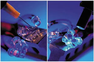 The DYMAX 3000 series plastic-bonding adhesives make highspeed, high-volume bonding of plastic appliances, subcomponents, housings and enclosures possible. These adhesives cure in seconds upon exposure to ultraviolet light and/or visible light, even through UV-blocked plastics. These no-VOC, worker-friendly adhesives from DYMAX form high-strength, environmentally-resistant bonds to plastics and other substrates including polycarbonate, PVC, phenolic, acrylic, metal, glass and ceramic. They are exceptional adhesives for bonding dissimilar materials, something that cannot be done with traditional welding methods and other types of adhesives.