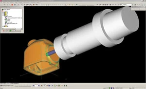 ESPRIT Mold, on the other hand, enables the programmer to create workplanes that involve rotating either the tool or the part and then generating code to move the machine into the workplane as required for machining. The programmer sees the tool, tool holder and part in the proper orientation on the screen and can graphically generate the toolpath. This saves time and makes it much easier to ensure that the program is correct. Woodhouse moved the rotational axes into position, tried out the cut, and was quickly able to see if there was any interference between the part and the toolholder.