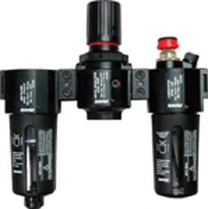 A line of air preparation equipment features three sizes of filters, regulators and lubricators (FRLs). The Miniature Series 10 is available in 1/8" and ¼" NPT and offers the standard compressed air filter, pressure regulator, air line lubricator, filter/regulator combination unit, and oil removal filter. Series 10 also offers a variety of FRL assembled combinations.