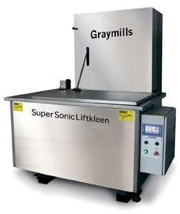 The Super Sonic Liftkleen parts washer features heated, full-immersion cleaning, coupled with powerful Ultrasonics, to thoroughly wash intricate and difficult-to-clean parts. Versatility and enhanced features offer set-it and forget-it performance. Features like PLC control, touch-screen interface, automated lift/agitation platform and lid for easy loading/unloading of parts, and a filter system, make parts washing easier. A full-immersion ultrasonic cleaning, platform agitation, heated aqueous fluid and a sparger system is used to clean off the surface of the cleaning solution bath so parts emerge cleaner. Heavy-duty stainless steel construction makes it rugged and reliable, and the dual-wall fully-insulated tank conserves energy.