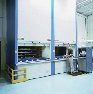Conventional static storage systems like shelving and cabinets require order pickers to spend much of their time traveling aisles searching for items. Automated storage and retrieval systems allow quick access to goods by bringing items to the operator at an ergonomic height. Operators simply scan a barcode or enter the part name or number into the system and stored items are automatically delivered to the operator, reducing labor requirements by up to 66%.