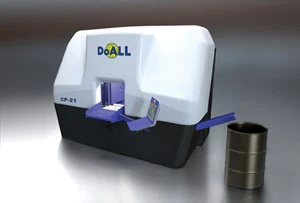 DoALL Sawing Products will introduce Model CP-21A, the first in a new line of high production dual-column band sawing machines. Model CP-21A has a 2" blade for greater beam strength and a powerful 10hp AC inverter band drive system with variable speeds from 40fpm to 360fpm for efficiently cutting a wide range of materials up to 21" diameter, round or square. It incorporates a user-friendly NC control with 12" color touch screen, and features a split front vise with dual-range vise clamping to allow higher clamp forces for larger work pieces, a floating-style index assembly with incremental index capability, and a unique head design that is tilted back 30° to minimize band twist and reduce band fatigue. Other features include a quick start feature that minimizes setup time by allowing automatic setting of band speed and feed rates based on material type, a 36" high chip auger discharge chute that permits the use of a 55 gallon drum for efficient chip collection, and easy access to coolant and hydraulic systms for reduced maintenance costs.