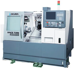 Okuma's LB3000EX SPACE TURN CNC Lathe is one of four new models offering 66 option variations – providing high quality multi-tasking capacity for a 2-axis lathe. Built on a box slant bed with a thoroughly tested thermo-friendly design, the LB3000EX is able to achieve machining dimensional change over time of less than 5µm.