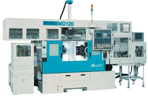 The MD120 and MD200 twin spindle turning centers are built with completely separate bed constructions. Separate beds eliminate the transfer of harmonic vibrations. This unique design provides excellent workpiece roundness and tremendous surface finish capabilities. The MD Series turning centers incorporate live tools on the turret as a standard feature with spindle drive positioning control. Live tools are available on all turret stations. The Live tool heads are available as an option to suit various requirements.