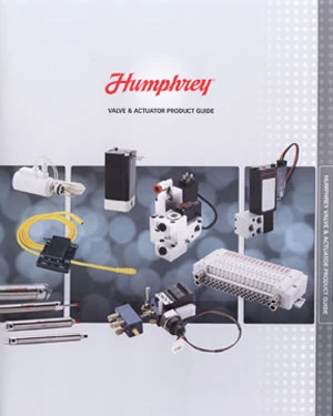 A free product guide covers the line of pneumatic valves and actuators. Included are photos and brief descriptions of Humphrey's direct and indirect acting solenoid and mechanical valves, TAC valves, air pilot valves, cartridge insert valves, vacuum valves, proportional valves, and the line of pneumatic and electronic actuators and accessories. Also included is a brief explanation of Humphrey's engineered solutions and examples of their totally custom valves.