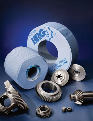 BRGg-VPHS high-speed wheels are the latest addition to the complete line of grinding wheels engineered for superior worm and angle gear grinding. Norton BRGg wheels are designed to reduce grind cycle times by increasing metal removal rates. The increase in metal removal rates has been applied without metallurgical damage to the surface being ground or loss of dimensional tolerance. Longer wheel life is an additional benefit of the BRGg- VPHS grinding wheel, and the new high-speed wheels are qualified to run up to 60 m/s (11,800 sfpm). For high-speed and standard-speed grinding on the most advanced CNC grinders to older grinders, Norton has combined the abrasives and induced pore bond systems to come up with a complete wheel line for gear grinding. Norton Abrasives offers a complete line of gear grinding wheels with conventional aluminum oxide to the most advanced highperformance ceramic grains, as well as a complete line of dressing tools for worm and angle profiling applications.