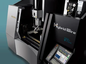 The Hybrid Wire EDM machine is a combination of Sodick's wire EDM and Flow International waterjet technology. Wire EDMs have limited cutting speed due to the size of wire electrode while waterjet machines have limited cutting accuracy due to the waterjet itself. Sodick's Hybrid Wire overcomes these limitations by combining the strength of the waterjet's cutting speed and the wire EDM's cutting accuracy. The machine's cutting speed and accuracy is further increased with Sodick's linear motor axis drives.