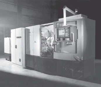 An AC maindrive motor powers the machines work spindles via a central shaft. As an option, shops can get all independently driven work spindles. For this, an auxiliary motor, with rotary encoders signaling the work spindles actual position to the control system, powers spindles. This setup facilitates independent spindle speeds and constant cutting speeds, as well as spindle stops, angular positioning, and Caxis applications.