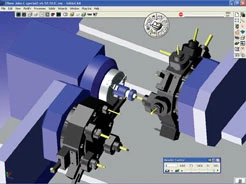 Gibbs and Associates' GibbsCAM Machine Simulation option features integral Cut Part Rendering, which supports material removal simulation and verification. GibbsCAM's Machine Simulation capability supports accurate simulation and validation of a CNC program's machine tool motion, including 5-axis simultaneous milling machines. The version of GibbsCAM Machine Simulation being introduced at IMTS adds support for turning, mill/turn and multi-task machine tools. Machine tool models can be built and set up like the real machine tool, then the CNC program is simulated to validate it prior to running the CNC program on the actual machine tool. Not only does this allow potential programming errors to be visually identified before they become expensive mistakes out on the shop floor, but program inefficiencies can also be recognized and addressed.