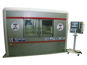 MC Machinery Systems, Inc. has expanded its product lineup to now include the Waterjet line. EVOLUTION X5 waterjet is powered by Mitsubishi Electric, giving it more programming capabilities than other waterjet manufacturers.