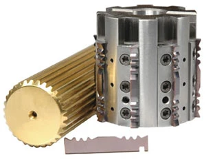 Utilizing their standard insert locking and locating system, Advent Tool produces the appropriate custom form-on standard insert blanks ground in-house. With the system pictured, Advent Tool has two forms on the insert, in this case one form for roughing and one form for finishing. In addition to vast productivity gains from carbide, as opposed to highspeed steel construction, the platform uses a 3-tooth form in the cut which further enhances throughput over a conventional single tooth involute hob cutter.