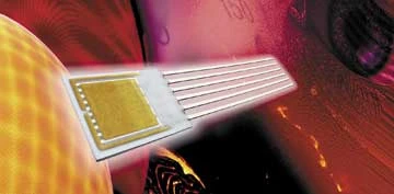 The Multi-Sensor-Platform chip from Heraeus Sensor Technology combines several platinum thin film structures, such as temperature sensors, heaters, and electrodes, on one platform substrate.