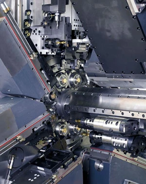 Tornos has developed an eight-spindle machine with two independent, 3-axis back working stations. In operation, positions 1 through 6 are used to perform operations on the front of the part. Every two indexes, two parts are cut off in positions 7 and 8. Those parts are then clutched by the two independent pick off spindles and presented to as many as five tools per part for a variety of back working operations. The new multispindle also features eight independent motorized spindles. Adjustable spindle speeds range from 0 to 8,000 rpm.