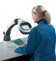 Vision Engineering has designed the Lentis high performance bench magnifier to provide operators with all around comfort, ease of use, and superior clarity of the subject under magnification. Lentis is designed with an optical lens that has minimal distortion across the entire field of view benefiting operators requiring accurate magnification across a larger surface area. Lentis also features a multi-layer coating on the lens to minimize any ambient reflection disturbance while inspecting or manipulating subjects. A pair of 4W fluorescent tubes illuminates the image under magnification of 2.5 dioptres, providing working distances up to 9.84 in. (250mm) and allowing for manipulation and material rework to be carried out accurately.