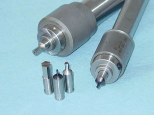 Each holder has an extra long shank, reducing vibration and increasing rigidity. This also allows for modification to each specific machine and application. Capable of withstanding 2,200 lbs of push force, this broach head also incorporates a special bearing design.