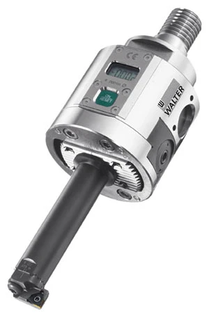 The digital B4035 boring head, with an optoelectronic adjustment measuring system and digital display with 0.0001" accuracy in the diameter range 0.118" to 4.882" (3mm to 124mm), offers maintenance-free automatic balance compensation. The flexible screw fit connections also make this tool ideal for all spindle adaptations.