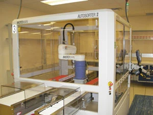 The three AutoSorter cells don't require a full-time operator. One operator is assigned to service all three cells; this person per forms other tasks as well. The robot cells require very little operator intervention of any sort.