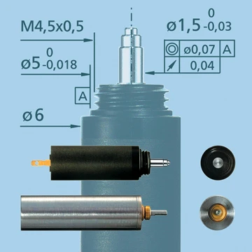 The matching 06/1 planetary gearhead is an all steel design available in ratios from 4:1 up to 4,096:1. The gearhead is rated at 25 mNm continuous and 35 mNm peak. The standard operating temperature range is -30°C to +100°C. A radial shaft load of up to 5N is possible with the ball bearing version, model 06/1K.