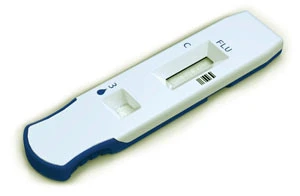 This device uses a lateral flow test strip to evaluate, within a matter of minutes at the point-of-care, whether or not a patient is infected with a virus. In conducting such a test, a fluid sample is collected from the patient and mixed with a buffer, after which several drops of the combined sample and buffer are added to a sample well. The sample is applied, test strips run are run, and a clinician then places the Diagnostic Lateral Flow Cartridge into an instrument that reads the test result.