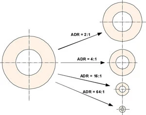 ADDR is the ratio of the cross-sectional area of the extruded plastic melt to the cross-sectional area of the plastic in its final product form (tube, hose or insulation on a core such as a wire or cable). ADDR is the extent to which the plastic has been reduced in size to form the part; it is a measure of the amount of stretching that occurs between the exit of the die and the takeup.