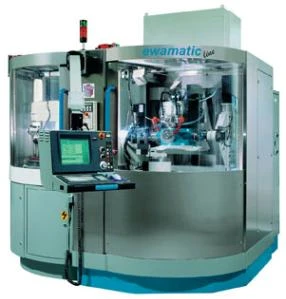 The ewamatic line readily accepts automation. As a fully automated cell, it includes loading/ unloading by a Scara fouraxis robot, part sorting, multiple pallets and pallet stacking functions, and an ultrasonic cleaning station.