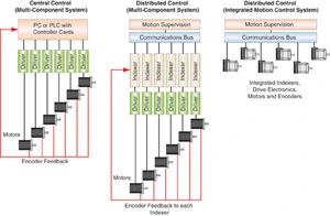 Integrated motion control solutions for machine design are able to significantly reduce the amount of space required for a machine by consolidating components, eliminating cabling and possibly an entire enclosure (in a component based motion control system, the control electronics and drivers are often contained in separate electronics enclosures).