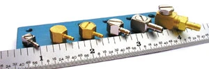 Beswick engineers went back to the drawing board. The application required an adjustable position fitting. How would this be achieved in such a small package? The answer was found by nesting the head of the screw stud into the 5/16 in. hexagonal body of the fitting. This approach allowed Beswick to maintain the 0.281 in. installed height. Beswick was also able to retain the leaktight O-ring seal design by incorporating a precision machined gland under the head of the screw stud. This fitting was named the MLAS series and, as with the MLA series elbows, the hose barb was joined to the fitting body with a solder joint.