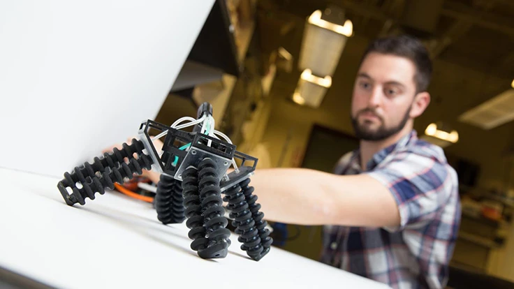 "In nature, complexity has a very low cost," Tolley says. "Using new manufacturing techniques like 3D printing, we're trying to translate this to robotics."