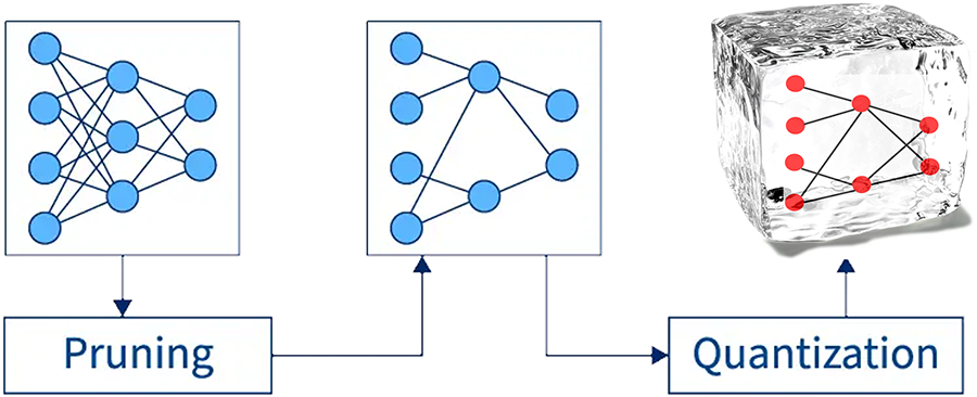 - Model Pruning: Removing nonessential components of a neural network, thereby reducing memory and processing requirements while maintaining accuracy.