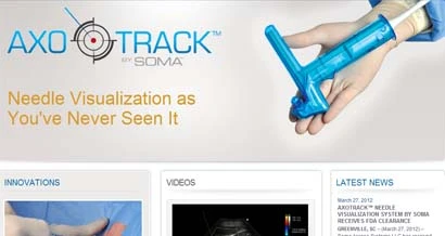 AxoTrack will be available on Terason ultrasound systems by mid-Summer 2012. Additional ultrasound manufacturers are expected to launch AxoTrack platforms in the near future. Introduced as ExactTrack during beta testing, the AxoTrack system is the first product in a comprehensive portfolio of solutions from Soma Access Systems LLC that will carry the AxoTrack brand.