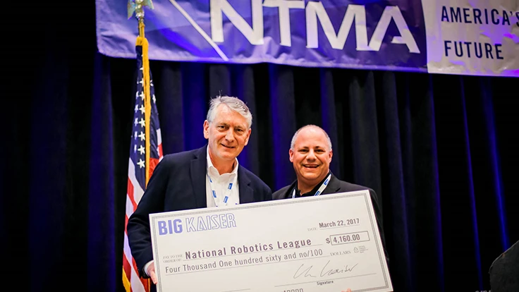 At the first general session of National Tooling & Machining Association’s (NTMA) annual meeting near Jacksonville, Florida, Chris Kaiser, president/CEO of BIG KAISER, presented a donation for $4,100 to benefit the NTMA’s National Robotics League (NRL).