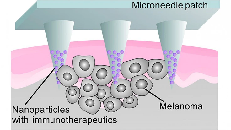 The researchers tested the technique against melanoma in a mouse model. The microneedle patch loaded with anti-PD-1 nanoparticles was compared to treatment by injecting anti-PD-1 antibodies directly into the bloodstream and to injecting anti-PD-1 nanoparticles directly into the tumor.