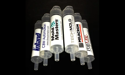 Accurate label placement in the mold cavities is critical to the success of this application. Typically, the dosage markings on a syringe barrel are either pad or offset printed onto the barrel, or printed on the self-adhesive polymer labels and placed on the barrel as secondary operations. The small outer diameter of the barrel and the need to align the registration dosage markings created a challenge for the label placement. However, the companies collaborating on this project came up with creative and innovative ways to meet all of the challenges to this project.