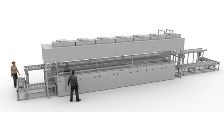 Ultrasonic Cleaning Machines (UCM AG) of Switzerland responded with an ultrasonic fine-cleaning system that provides reliable cleaning of more than 1 million stainless steel turned parts and tubes per day, six days a week – with products being discharged directly into a good manufacturing process (GMP) Class D cleanroom.