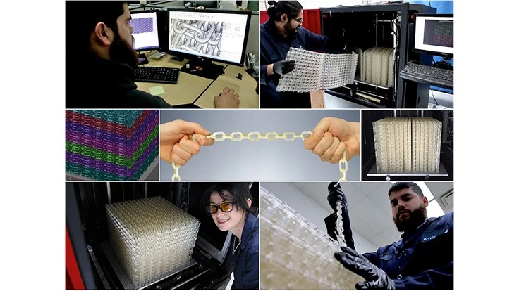 “E-RigidForm is a breakthrough material for use on our 3SP line of 3D printers, which offer very large build areas without sacrificing speed and accuracy,” says CEO Al Siblani. “A print job of this size and complexity would not have been possible before, simply because of the stiffness required during the 3D printing process for so many links and layers.”