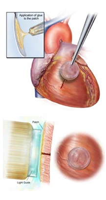 The bio-inspired glue described is non-toxic, binds strongly to tissues offering a leak-proof seal on demand, and works well in the presence of actively contracting tissues and blood flow. The authors demonstrate how the adhesive, alone or in conjunction with a biodegradable patch, can effectively be used to repair defects (ruptures) of the heart and blood vessels during minimally invasive procedures.