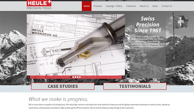 Another addition to the Heule website is industry pages dedicated to providing more specific information to customers in the primary manufacturing sectors that Heule serves, including medical/small parts, aerospace, automotive, energy, construction/large parts, and precision machining. Users from these industries can browse through testimonials, case studies, and common tools used to solve the challenges that are relevant to manufacturing and production in his or her industry.