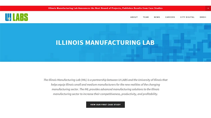 The Illinois Manufacturing Lab (IML), a partnership between UI LABS and the University of Illinois, is a program that helps equip Illinois small and medium manufacturers for the new realities of the changing manufacturing sector. The IML provides advanced manufacturing solutions to the Illinois manufacturing sector to increase their competitiveness, productivity, and profitability.