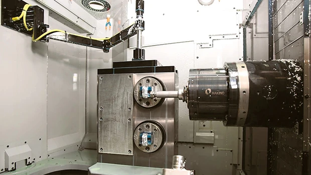 “Our biggest hurdle wasn’t the equipment. Installation was plug-and-play for the most part and took about two to three days. For us, the hurdle was thinking of all the positioning possibilities,” Campbell says. “Once we overcame the mental gymnastics of how best to position parts, we were able to combine operations and improve quality, since the products we are making require five to eight operations and a true position of 0.001".”