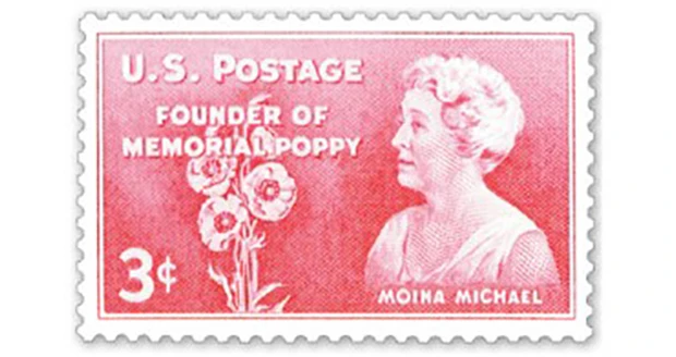 Shortly before Memorial Day in 1922, the VFW became the first veterans’ organization to nationally sell poppies. Two years later their “Buddy” Poppy program was selling artificial poppies made by disabled veterans. In 1948 the US Post Office honored Ms. Michael for her role in founding the National Poppy movement by issuing a red 3 cent postage stamp with her likeness on it.