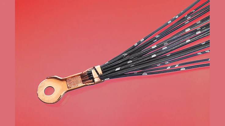 “Our technology is adaptable and our equipment is engineered to satisfy the needs of manufacturers in a variety of fields, including those requiring customized tooling,” says Devine. Sonobond units are routinely used to weld stranded wire-to-wire and wire-to-terminal for electrical wire harness and bus bar applications. They can weld multiple layers of thin aluminum, copper, and nickel foil to itself or to battery terminals and components of fuses/circuit breakers, ignition modules, and photovoltaic panels. One version of our equipment can also seal HVAC tubing, replacing crimp and solder methods.