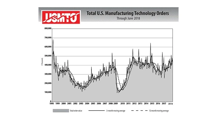 “While many manufacturers are expressing concerns about trade wars, it doesn’t seem that it has slowed their need for additional capacity, and orders for new capital equipment remain strong,” says AMT President Doug Woods. “Trade issues and supply chain delays are certain to have an impact on the equipment market as we head into the fall. AMT supports a quick and fair conclusion to the issues with our trading partners as exports are important to all manufacturers, and in the case of our members, represent more than a third of their annual output.”