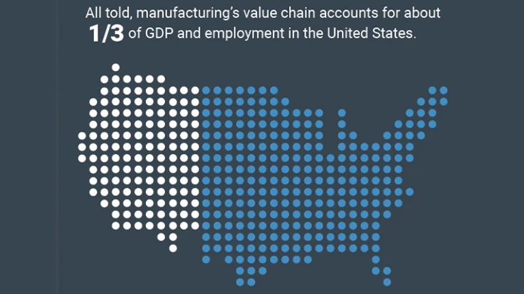 This study debunks these myths. MAPI Foundation’s research has found that manufacturing’s role in prosperity is much bigger than national statistics suggest; the value added from the entire manufacturing value chain is roughly one-third of both GDP and employment. By truly understanding manufacturing, the sector’s standing among educators, parents, and policymakers can be rebuilt, supporting better job opportunities and consistent economic growth for future generations.